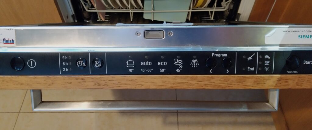 Our dishwasher (A Siemens SD6P1S) didn’t react when pushing the switch on button. No beep, no light on the control panel, nothing… The pleasure of manual dishwashing announced itself silently…
