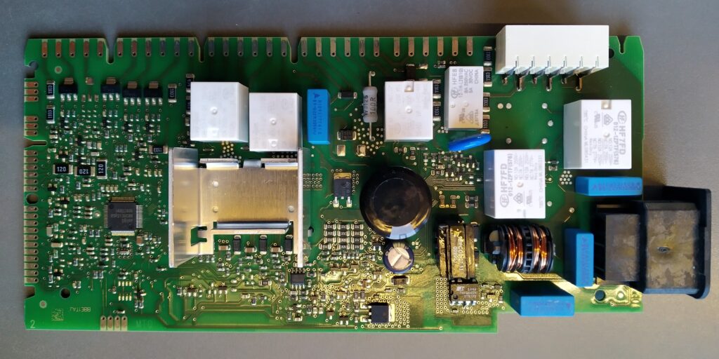 When opening the machine I first tried bypassing the power switch but the machine still didn’t react. I also assessed that the door contact didn’t really function like a general ‘shutoff’ and it seemed to be working fine so this probably wouldn’t be the problem. I also didn’t see any water at the bottom of the machine, so no leaks. I tried the float switch but the machine didn’t react. Having checked the most obvious potential causes I was starting to suspect that there might be a problem in the internal power supply of the machine…